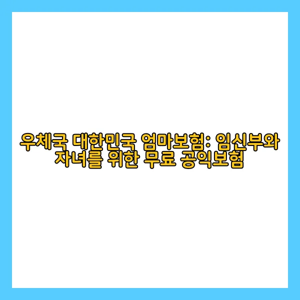 우체국 대한민국 엄마보험은 임신부와 자녀의 건강을 국가가 무료로 보장하는 특별한 공익보험입니다. 이 보험은 임신 관련 질환부터 자녀의 희귀질환까지 폭넓게 보장하며, 국가가 보험료를 전액 지원합니다. 예비 부모님들의 든든한 지원군이 될 이 보험, 함께 자세히 알아볼까요?