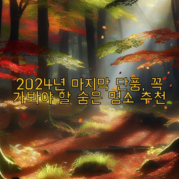 가을의 끝자락, 마지막 단풍이 물들어가는 계절이 다가오고 있습니다. 아마도 당신은 이 아름다운 순간을 놓치고 싶지 않을 것입니다. 2024년 단풍 시즌은 유난히 특별할 것 같아요. 일상에 지친 당신, 조용한 숨은 명소에서 자연의 고요함과 단풍의 황홀함을 만끽하는 시간을 상상해 보세요. 특별한 순간을 기록할 수 있는 사진 찍기 좋은 포인트도 함께 소개할 예정입니다. 이곳에서의 소중한 추억이 당신의 마음에 남기를 바랍니다. 함께 가을의 아름다움을 느껴보아요.